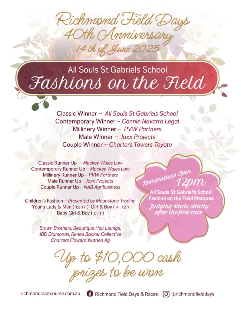 Suitably qualified judge/s will be selected to judge the Fashions on the Field.